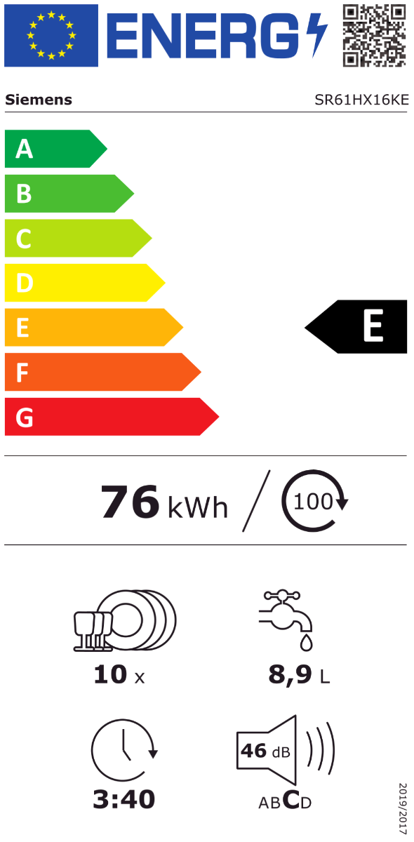 Siemens SR63HX74KE (volledig integreer) vollintegrierbarer Geschirrspüler 45 cm