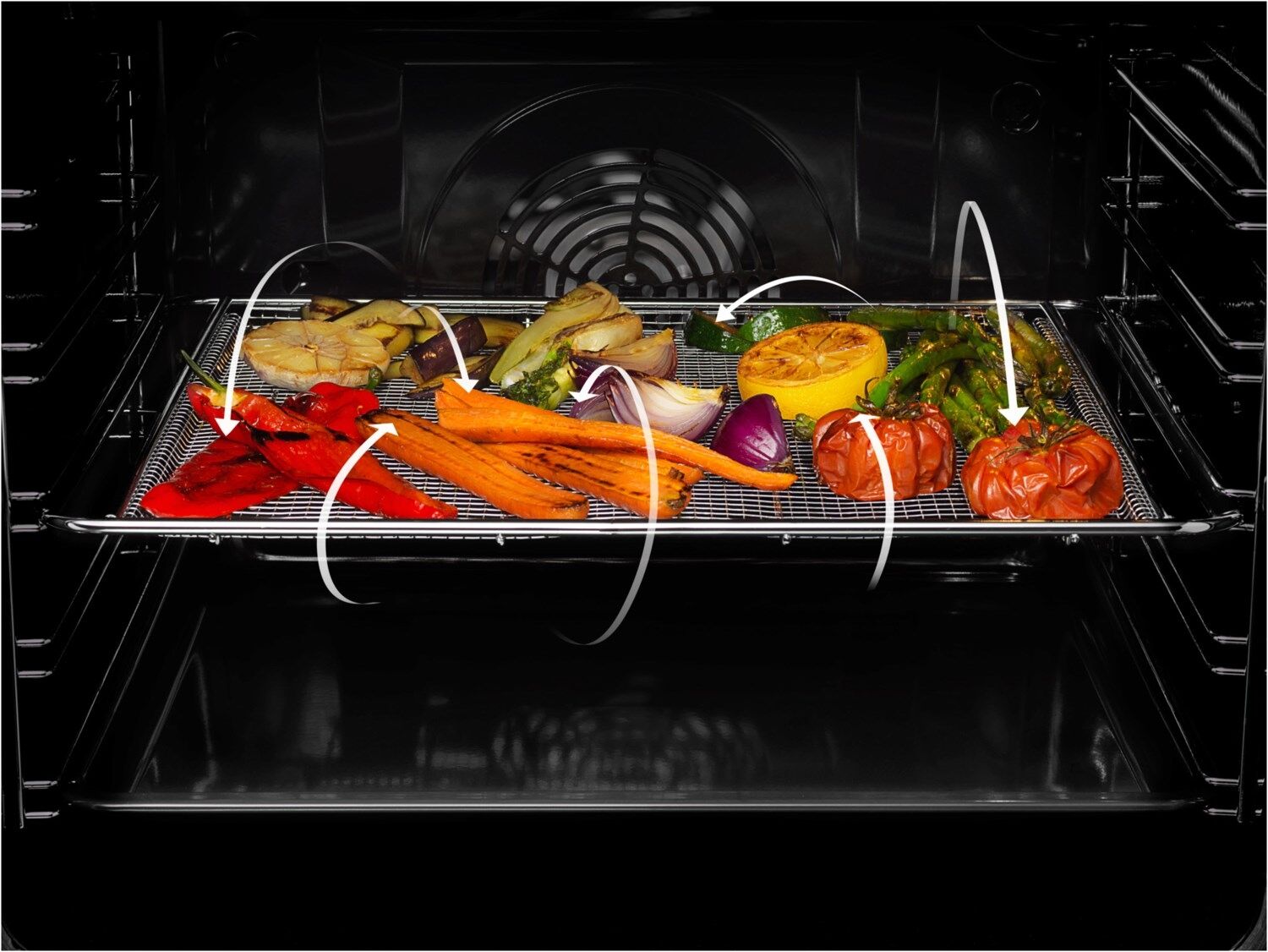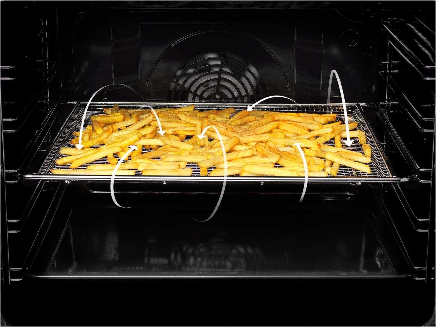 AirFry BackrostGenieße knusprige Speisen wie Pommes, Gemüse oder Chicken Wings mit wenig bis keinem Öl. Die speziell entwickelte Gitter-Struktur sorgt für mehr Luftzirkulation und eine gleichmäßige Hitzeverteilung. Ein Wenden deiner Speisen ist nicht erforderlich. Knusprige Ergebnisse ohne WendenDie speziell entwickelte Gitter-Struktur sorgt für mehr Luftzirkulation und eine gleichmäßige Hitzeverteilung, sodass das Gargut von allen Seiten gleichmäßig gebacken wird. Genieße stets köstliche und knusprige Ergebnisse, ohne dass du deine Speisen wenden musst. Größere Portionen auf einmal zubereitenDank der verbesserten Luftzirkulation auf dem AirFry Backrost kannst du noch mehr Zutaten in einem Garvorgang zubereiten. Die große Fläche des Backblechs sorgt dafür, dass die Heißluft noch besser zirkulieren kann, und deine Speisen gleichmäßig von oben und unten erhitzt werden. Einfache Lösung für das Heißluftfrittieren in deinem BackofenPlatziere dein AirFry Backrost direkt im Backofen und bereite deine Lieblingsspeisen mit der AirFry-, Pizza- oder Heißluftfunktion deines Ofens zu.