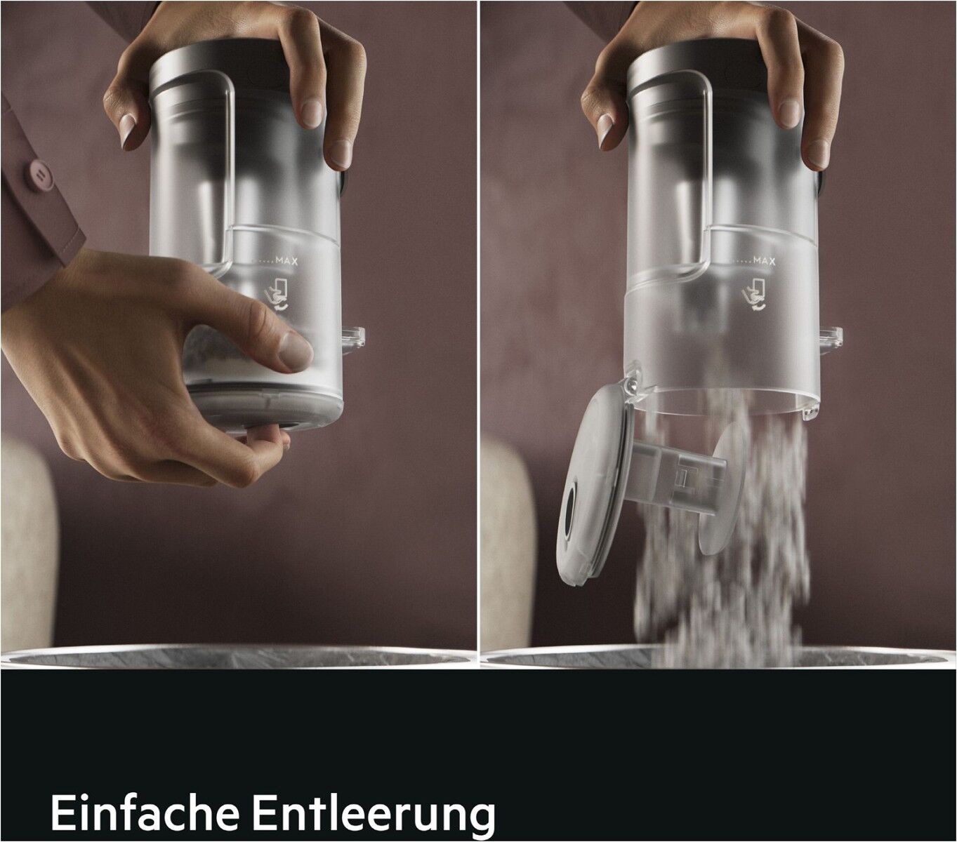 Schnelle Entleerung des Staubbehälters – kein Kontakt mit Staub