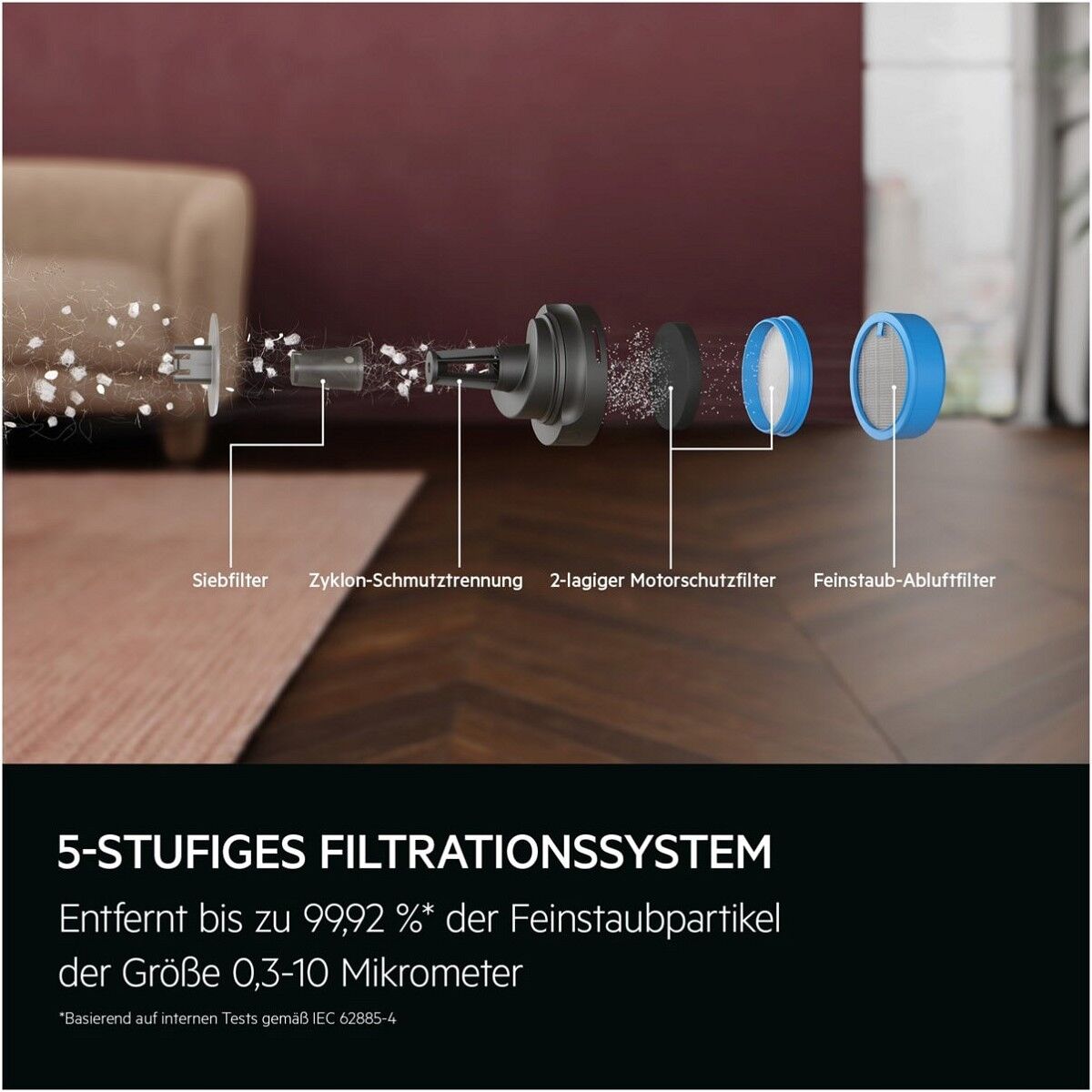 Bis zu 99 % Staubaufnahme* für gründliche Sauberkeit