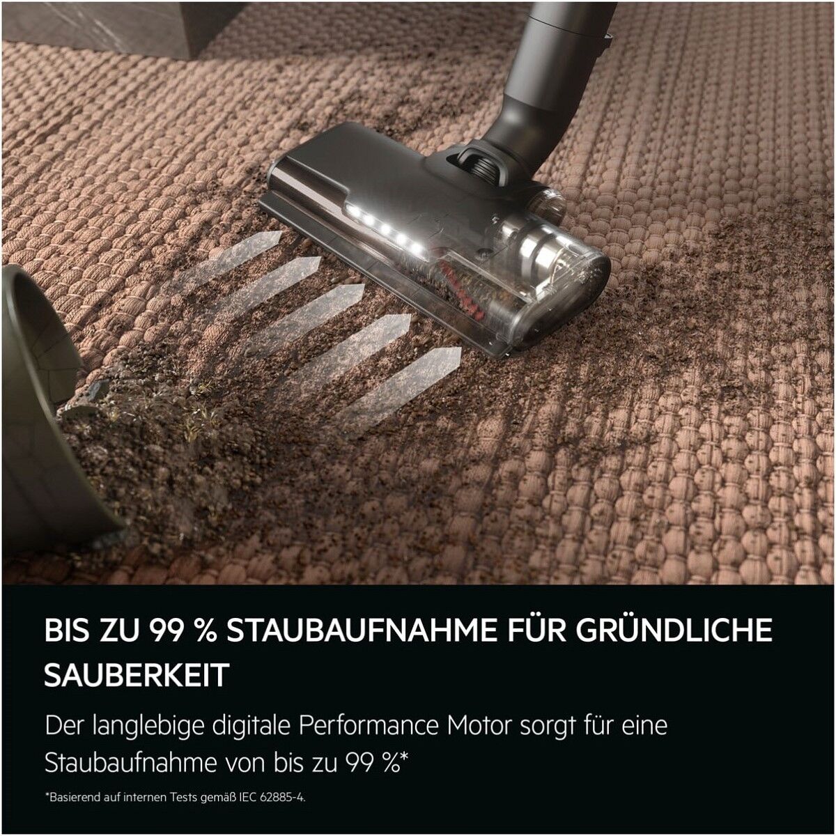 Ausgestattet mit einem langlebigen digitalen Performance Motor. In Kombination mit der UltimatePower Multi-Bodendüse sorgt dieser für eine gründliche Reinigung auf allen Bodenbelägen und nimmt bis zu 99 % des Staubs auf*. Der mühelose Weg zu einem sauberen Zuhause.