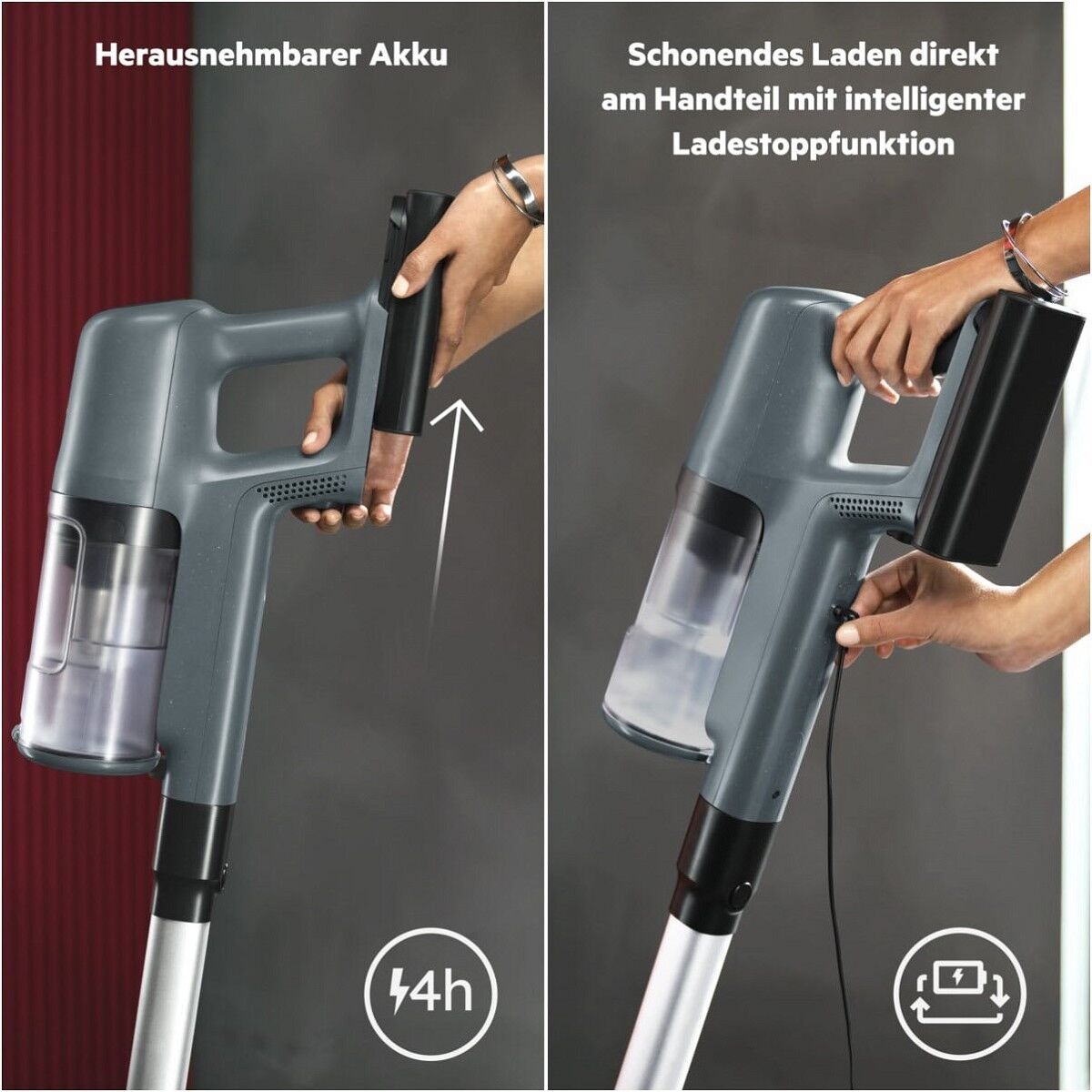 Mit zusätzlichem Wechsel-Akku bis zu 100 Minuten* staubsaugen