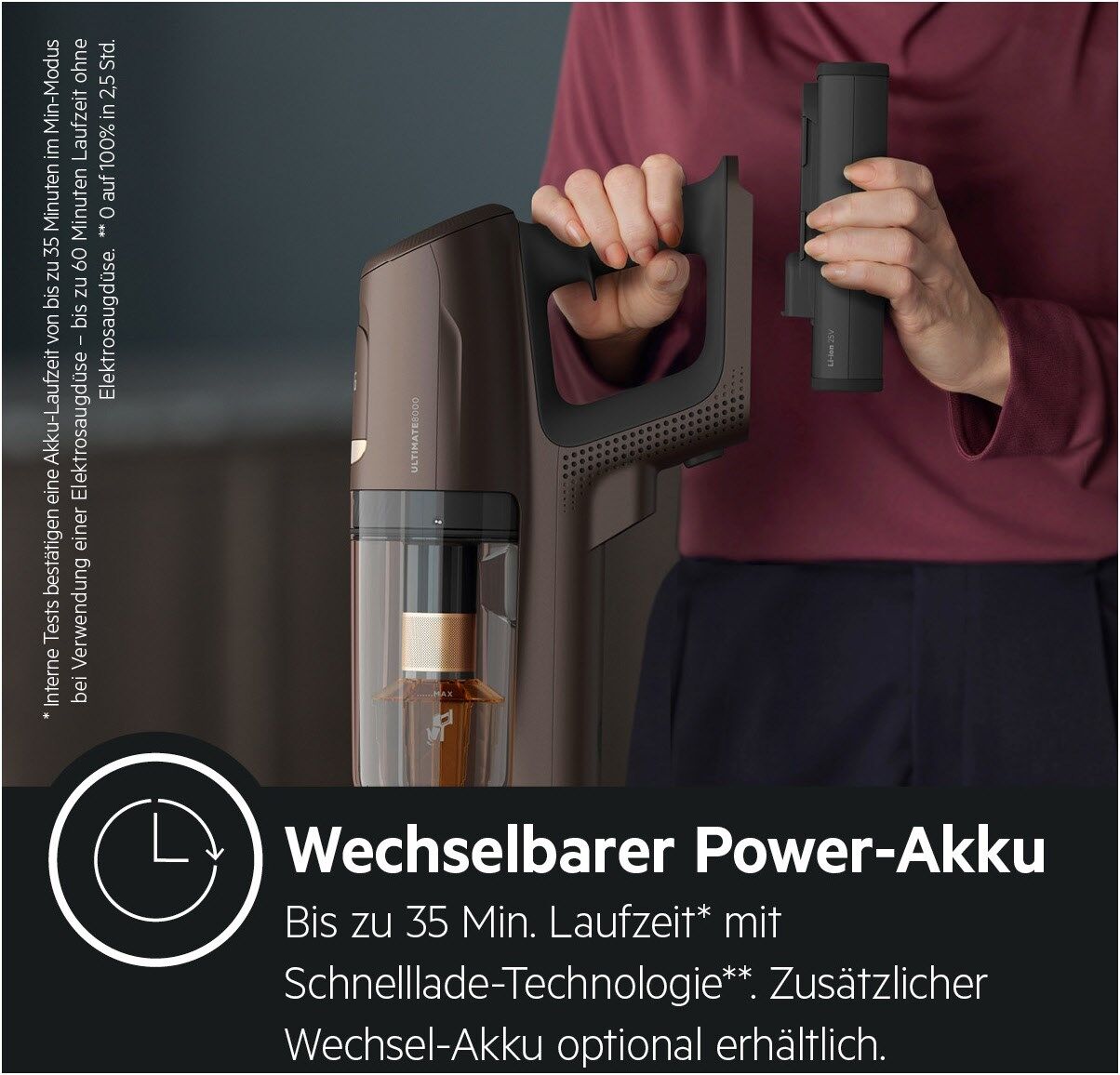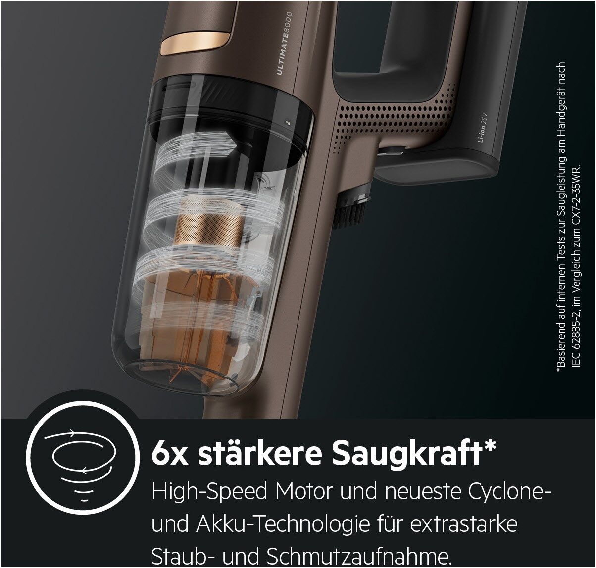 *Basierend auf internen Tests zur Saugleistung am Handgerät nach IEC 62885-2, im Vergleich zum Modell AEG CX7-2-35WR