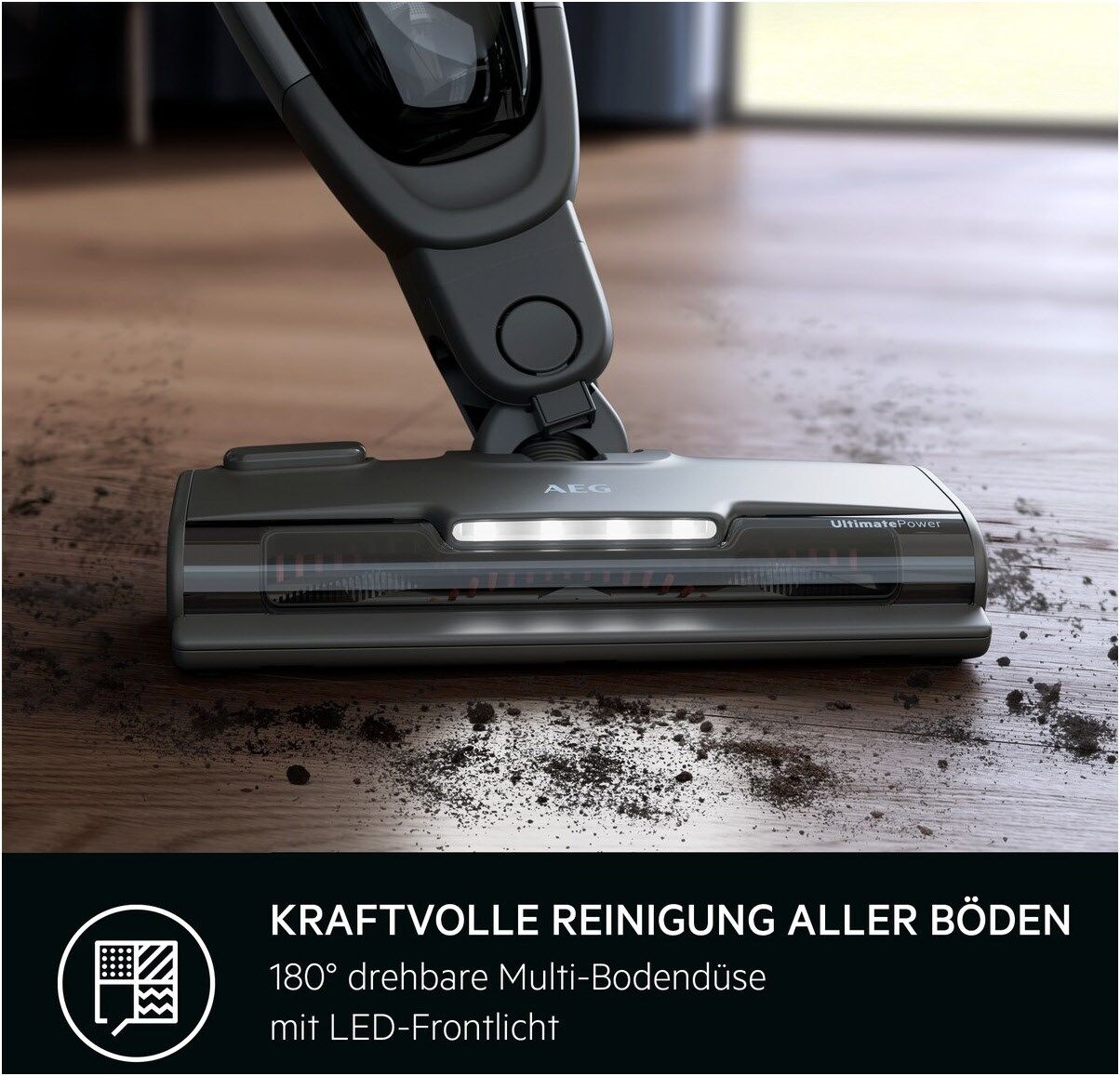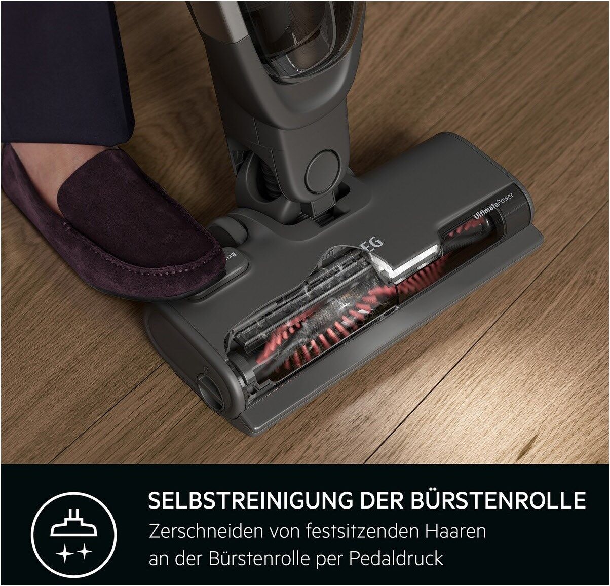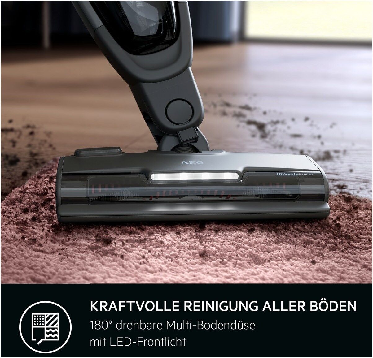 Für eine mühelose Reinigung verschiedener Oberflächen Reinige Teppiche und Hartböden mit der UltimatePower Multi-Bodendüse, ohne die Düse wechseln zu müssen. Die rotierende Bürstenrolle richtet die Fasern deines Teppichs auf und befreit diesen tiefenrein von Grobund Feinpartikeln.