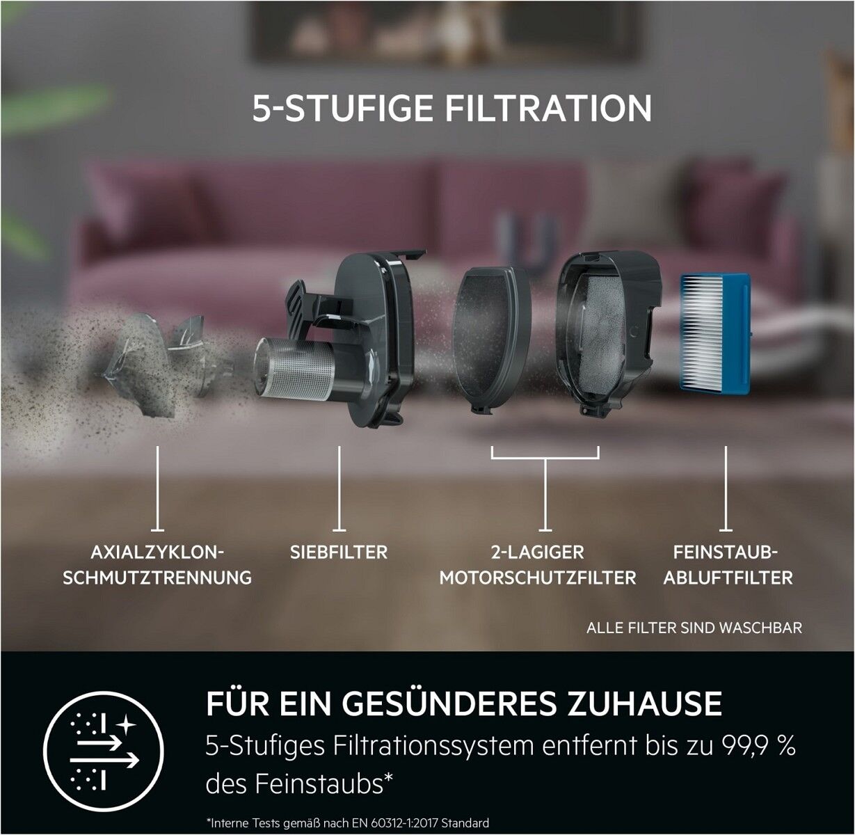 Der starke, ruhigere Typ. Mit einem Motor, der weniger Geräusche macht** und dennoch eine leistungsstarke Reinigung bietet, werden deine Böden sauberer und das Staubsaugen leiser.