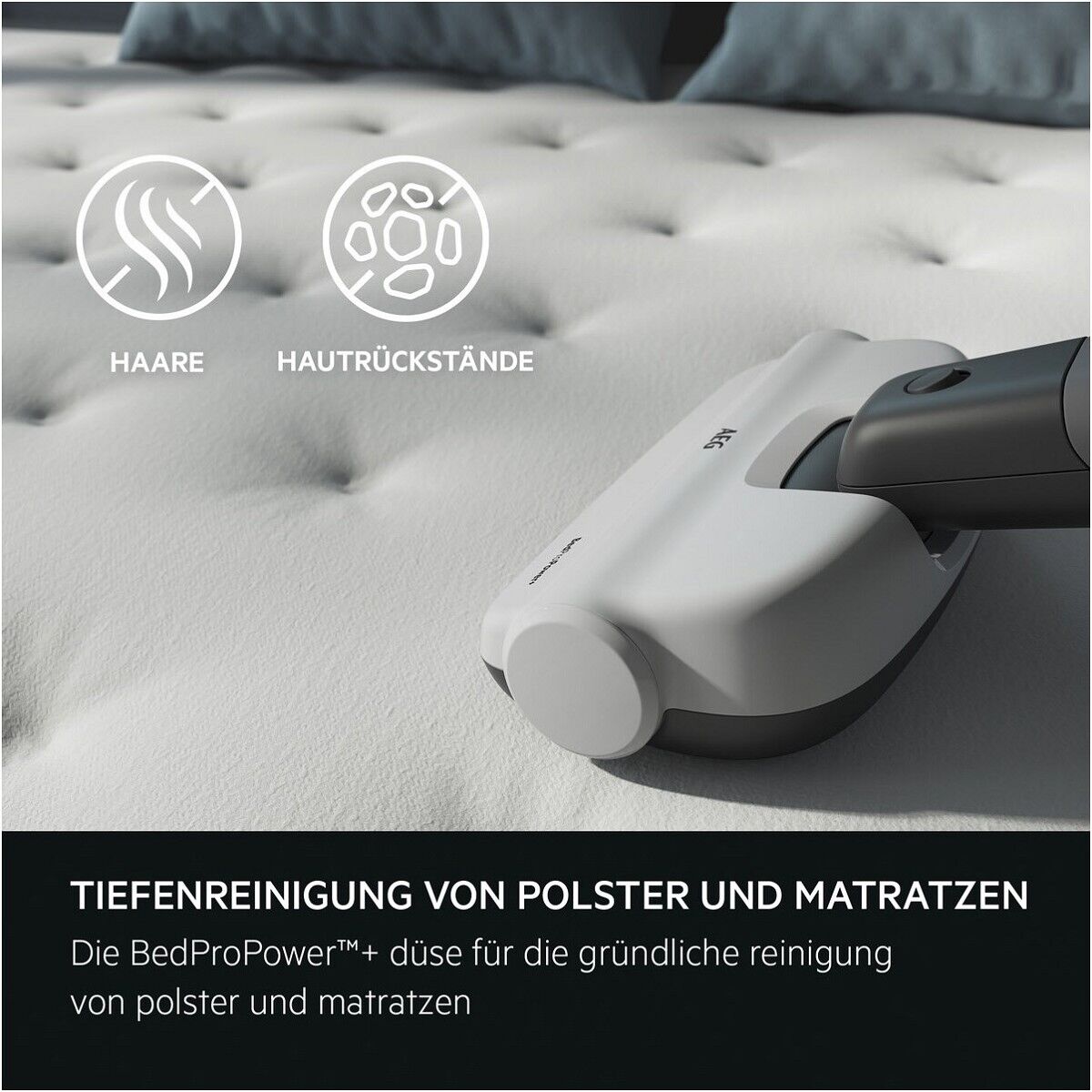 Hygienische Tiefenreinigung von Polstern und Matratzen Die BedProPower™+ Elektrosaugbürste ermöglicht dir eine hygienisch gründliche Reinigung deiner Betten, Kissen und Polster. Die Kombination aus Bürsten- und Gummistreifen an der motorisierten Düse befreit deine Polster von Staub und Schmutz - damit du dich rundum in deinem Zuhause wohlfühlst.