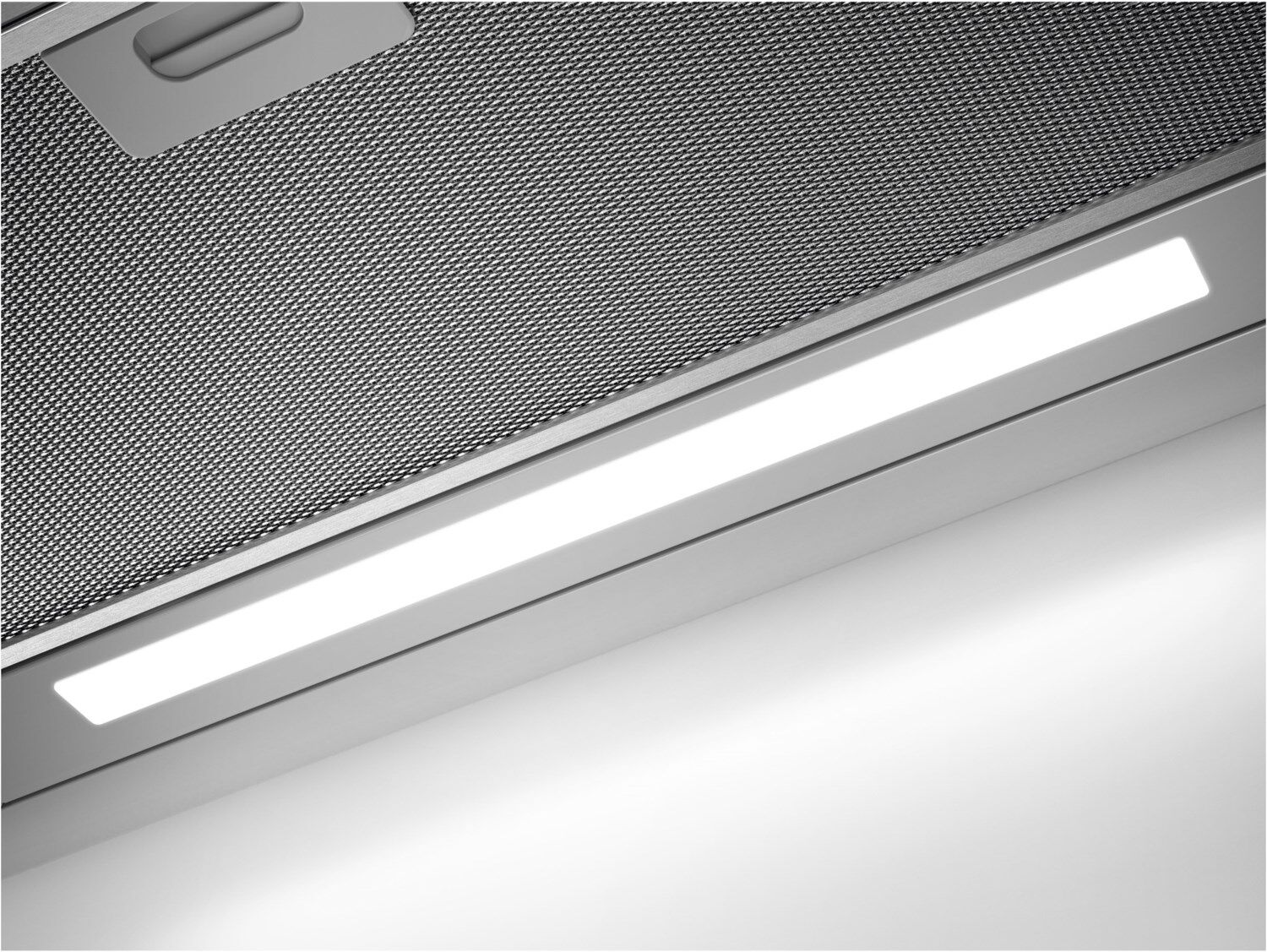 Die im Dunstabzug integrierte LED-Beleuchtung leuchtet das Kochfeld effizient und gleichmäßig aus. Für mehr Kontrolle, beste Sicht und vollen Überblick aufs Kochgeschehen.