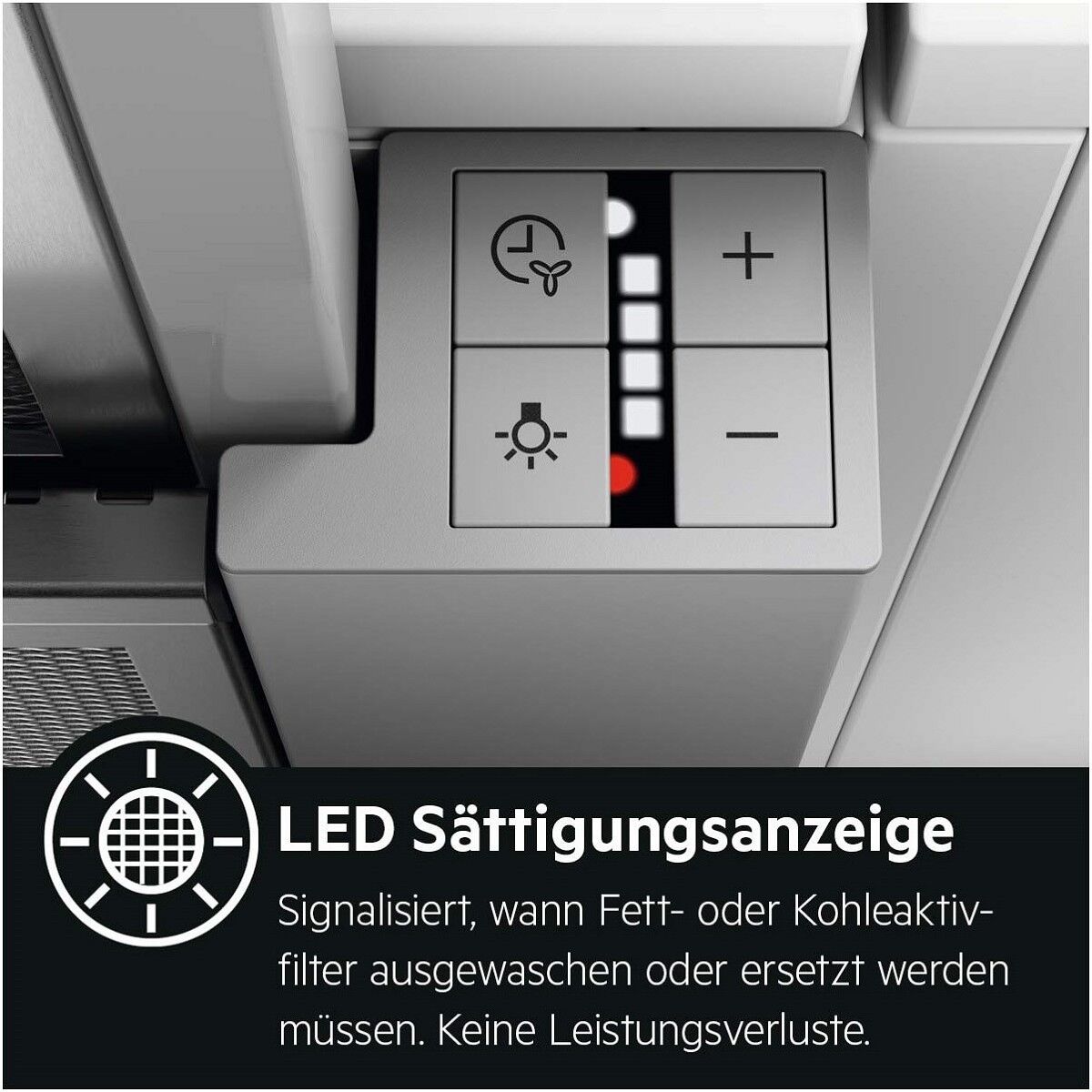 - Der kraftvolle Motor reinigt die Küchenluft schneller