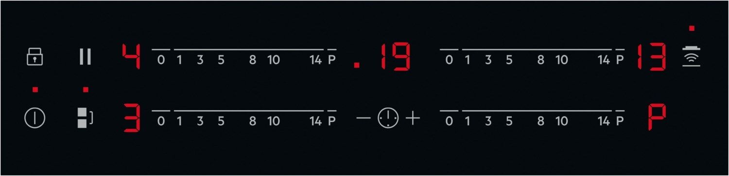 Das einzigartige Hob²Hood-Anschlusssystem dieses Kochfelds kommuniziert mit Hob²Hood- Dunstabzugshauben, indem es je nach Bedarf automatisch die Beleuchtung einschaltet und das Gebläse je nach Kochvorgang regelt.