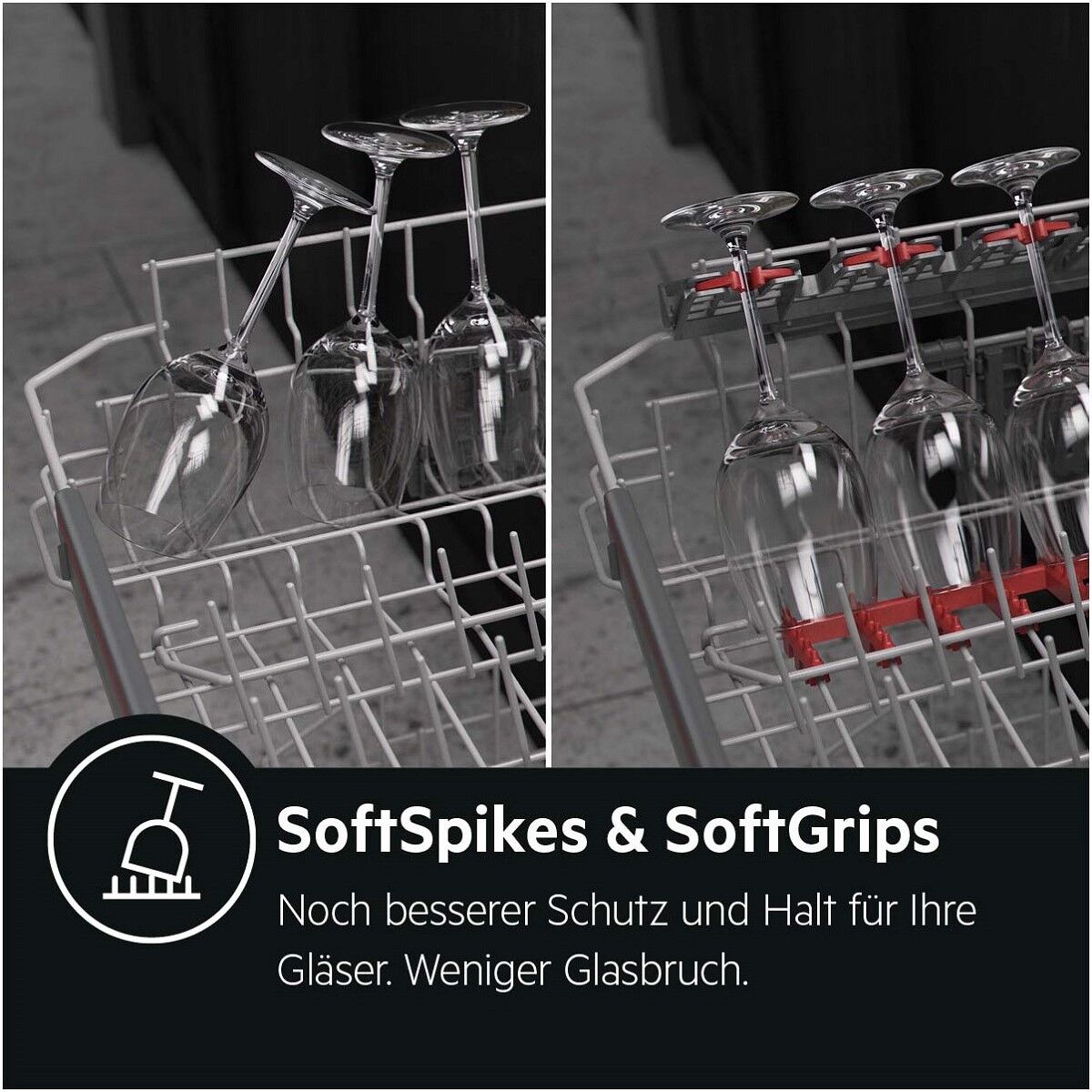 Die Glasstiele können einfach in die patentierten SoftGrip-Klammern eingeklipst werden. Und die im Oberkorb liegenden gummierten SoftSpikes lassen kein Glas verrutschen. Das schützt den Glasrand und macht ein Umkippen Ihrer Gläser nahezu unmöglich.