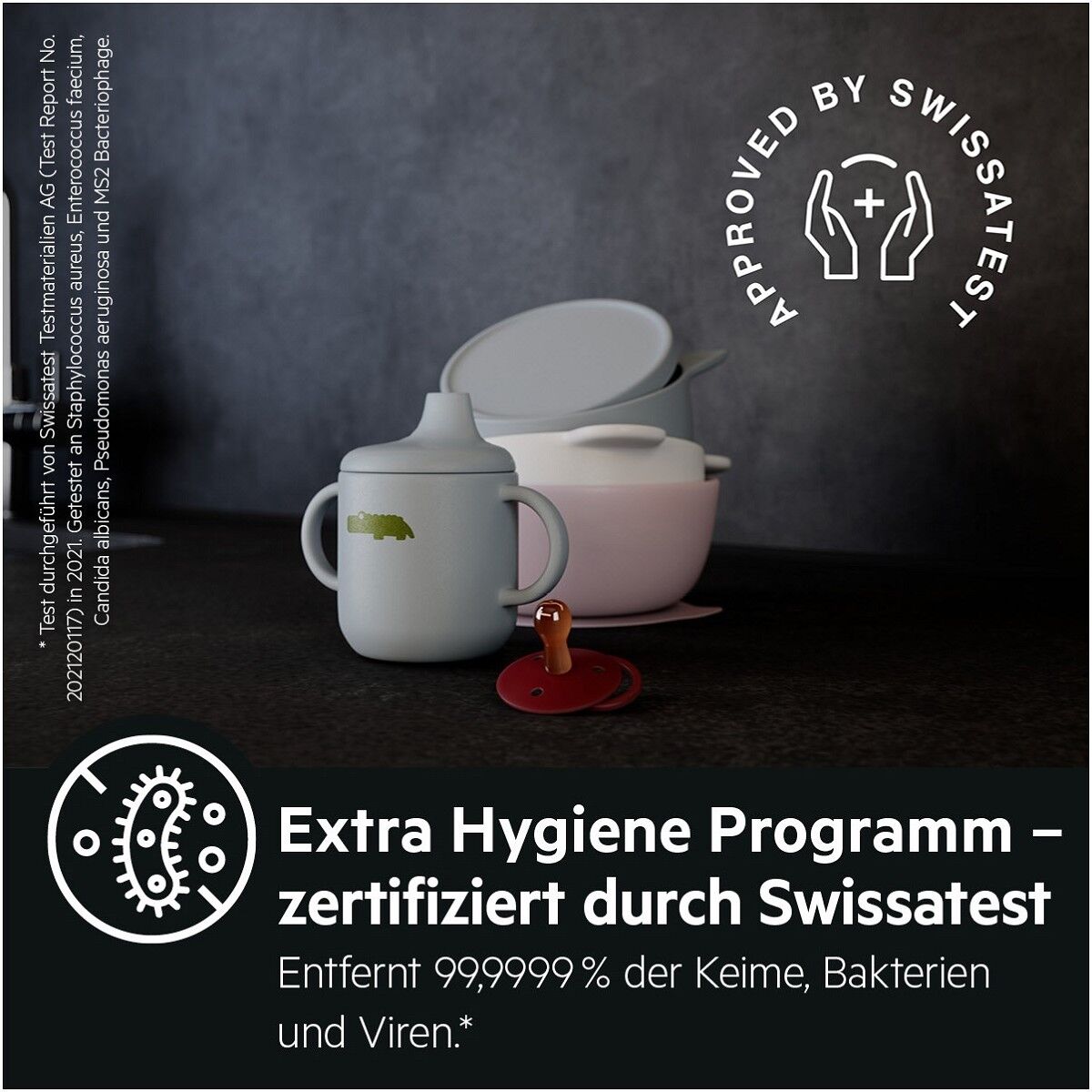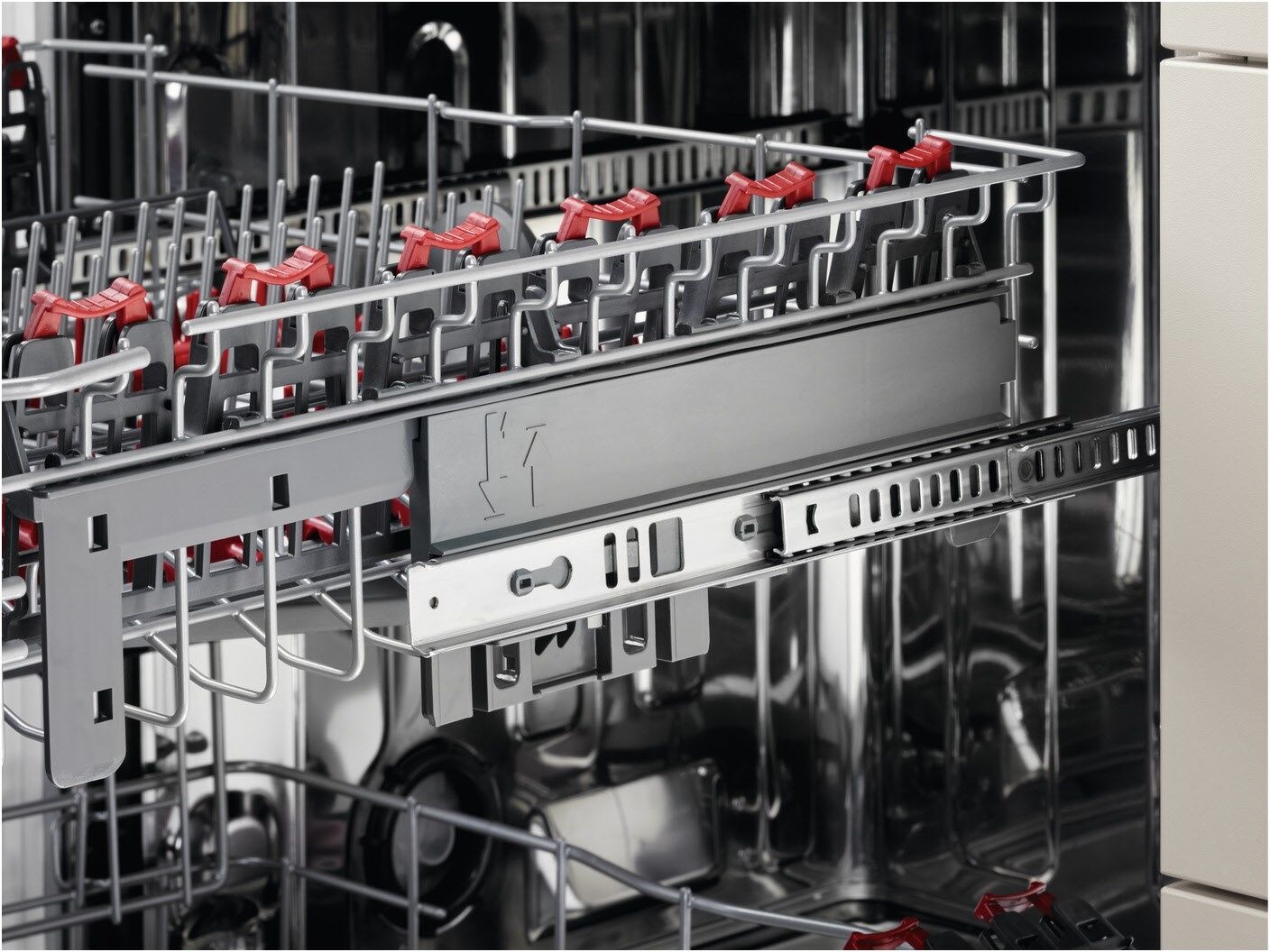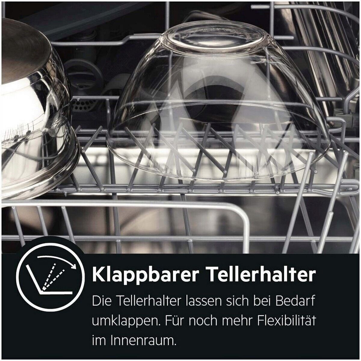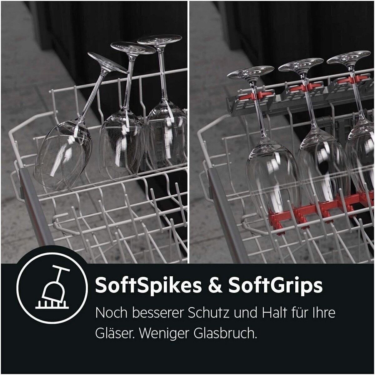 AEG Geschirrspüler der Serie 7000 mit GlassCareDie Geschirrspüler der Serie 7000 mit GlassCare sorgen für einen professionellen Schutz und ausgezeichnete Reinigung deines Geschirrs. SoftGrips und SoftSpikes im oberen Korb des Geschirrspülers sorgen zuverlässig für stabilen Stand deiner Gläser und verhindern Kratzer und Bruchgefahr. SoftSpikes & SoftGrips: Sicherer Halt für deine Gläser.Die Glasstiele können einfach in die patentierten SoftGrip-Klammern eingeklipst werden. Und die im Oberkorb liegenden gummierten SoftSpikes lassen kein Glas verrutschen. Das schützt den Glasrand und macht ein Umkippen deiner Gläser nahezu unmöglich. ComfortRails: Für leichtgängiges und schonendes Be- und EntladenMit den ComfortRails kannst du den Oberkorb und die Besteckschublade leichtgängig an ihren Platz schieben, ohne dass Teller und Gläser aneinanderstoßen. Das Be- und Entladen geht damit immer mühelos und schonend für dein Geschirr. Satelliten-Sprüharm: Weniger Wasserverbrauch.Der Sprüharm mit Doppelrotation bietet eine bis zu dreimal bessere Sprühabdeckung. Die feine Verteilung des Sprühwassers erreicht jeden Winkel. Hartnäckige Verschmutzungen werden leichter gelöst und gleichzeitig wird Wasser gespart. ExtraHygiene-Programm: Entfernt über 99,99 % der Keime und Bakterien*Das ExtraHygiene-Programm schafft hygienische Reinheit und Sauberkeit. Dazu wird in der letzten Spülphase die Temperatur auf 69 °C erhöht und mindestens 10 Minuten gehalten. So werden Keime und Bakterien abgetötet und entfernt. LED-Innenbeleuchtung: Langlebig und energieeffizient.Dank der LED-Innenbeleuchtung hast du optimale Sicht beim Ein- und Ausräumen - besonders, wenn dein Geschirrspüler im dunklen Bereich der Küche steht.