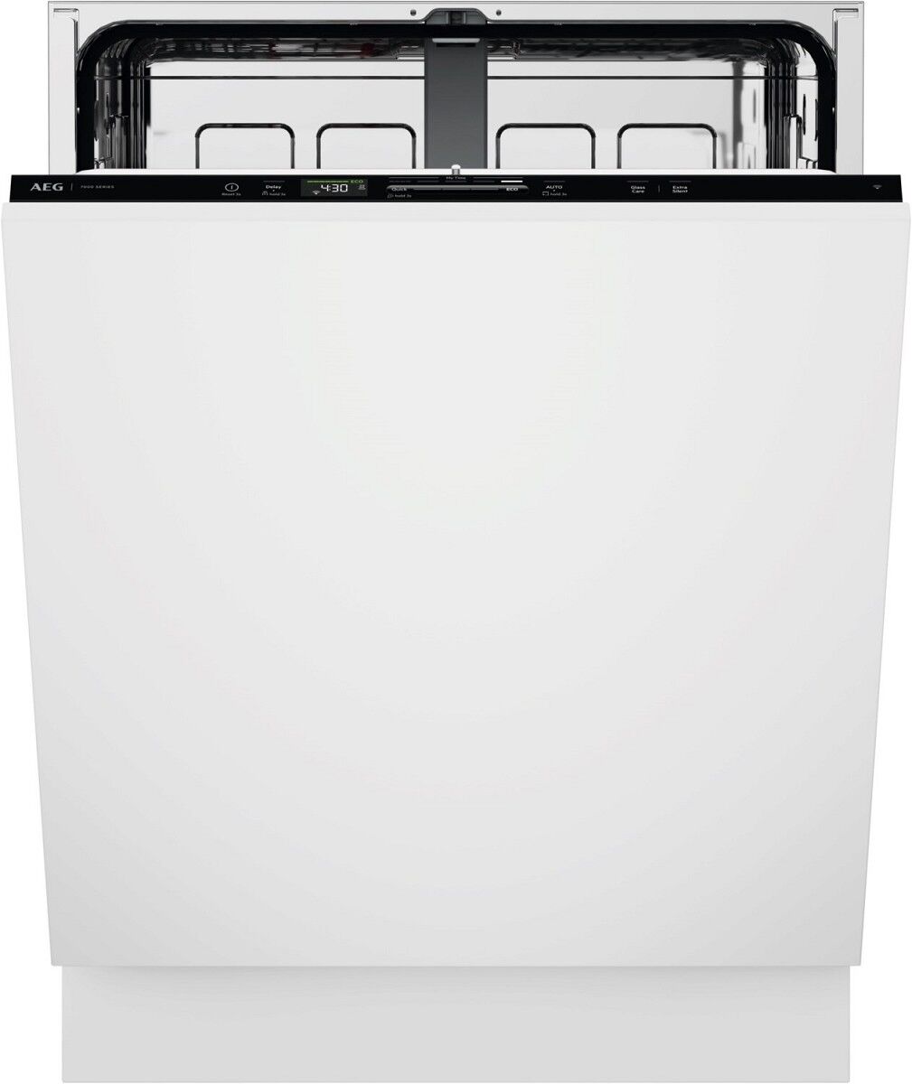 Effiziente, effektive Reinigungsleistung. Geräumige, flexible KörbeAEG Geschirrspüler der Serie 7000 verfügen über eine hohe Wassereffizienz und effektive Reinigungsleistung bei einem geringen Wasserverbrauch von nur 8,4 Litern dank des neuen Wassersystems. Die flexiblen Körbe mit klappbaren Bereichen sorgen für ein müheloses Beladen. Spart Wasser bei jedem Spülgang. Effizient und leistungsstarkAquaSave aktiviert das Wasserkontrollsystem deines Geschirrspülers, um Wasser nur dort einzusetzen, wo es gerade gebraucht wird. So reduziert sich der Wasserverbrauch auf 8,4 Liter ohne Kompromisse beim Reinigungsergebnis. EasyFlex Körbe mit teilbarem BesteckkorbDie leichtläufigen EasyFlex Körbe haben rutschfeste SoftSpikes®, um Gläser und Empfindliches vor dem Zusammenstoßen zu schützen. Schaffe mehr Raum für großes oder ungewöhnlich geformtes Geschirr durch die klappbaren Zinken. Die Besteckschublade bietet Platz für Schneebesen und Suppenkellen. Steuere Zeit und Verbrauch über das Display oder die AEG AppDas SmartSelect Connect Display und die AEG App zeigen dir jeweils die Dauer und Energieeffizienz jedes Programmes an. Reinige Geschirr schnell im 60 Minuten Programm, oder spare Energie mit dem ECOProgramm. Nutze die App für Tipps zur Beladung, zu Programmen und zur Maschinenpflege. Trocknet mit natürlichem Luftstrom statt HitzeAirDry nutzt den natürlichen Luftstrom zum Trocknen – ganz ohne Hitze. Gegen Ende des Spülgangs öffnet sich die Tür automatisch und lässt Umgebungsluft ins Gerät. Das sorgt für bis zu dreimal bessere Trocknungsergebnisse als bei geschlossener Tür. ExtraSilent: Noch leiser, wann immer du es brauchstMit der ExtraSilent Option läuft dein Geschirrspüler noch leiser in deiner Küche. Nutze einfach das Kontrollpanel oder die AEG App, um das Geräusch des 90 oder 120 Minuten Spülvorgangs um weitere 2 dB zu senken.
