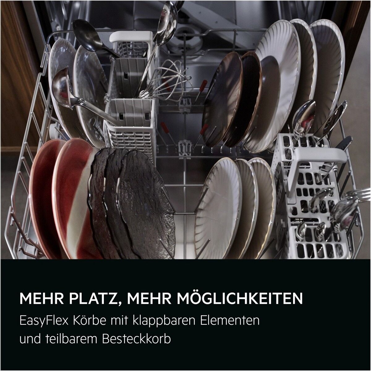 - Einfach zu beladene EasyFlex Körbe mit teilbarem Besteckkorb
