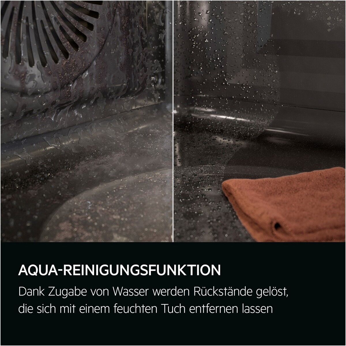AEG SurroundCook® Backöfen der Serie 5000 mit der SteamBake FeuchtigkeitszugabeMit den AEG SurroundCook® Backöfen der Serie 5000 mit SteamBake-Funktion gelingen dir Backwaren immer perfekt - außen gleichmäßig gebräunt, innen locker und fluffig.Durch Zugabe von Wasser in die beheizte Vertiefung füllt sich der Garraum mit Luftfeuchtigkeit und erzielt so beste Backergebnisse. SteamBake: Feuchtigkeitszugabe für optimale BackergebnisseDurch Aktivierung der SteamBake®-Funktion und der Zugabe von 250 ml Wasser in die speziell beheizte Vertiefung im Backofenboden gibt dein AEG Backofen während des Backvorgangs Dampf in den Garraum ab. Der Teig geht besser auf und dein Gebäck wird knuspriger, saftiger und fluffiger. Timeranzeige: Für ein präzises TimingDie Timeranzeige ermöglicht eine geführte und präzise Zeitkontrolle des Garvorgangs. Aqua-Reinigungsfunktion: Erleichtert dir die ReinigungDie Aqua- Reinigungsfunktion ist die natürliche und einfache Art, deinen Backofen zu reinigen. Durch die Zugabe von Wasser im Backofen entsteht Dampf, der hartnäckige Rückstände auf der Oberfläche löst. So kannst du sie mit einem feuchten Tuch ganz einfach entfernen. Multilevel Cooking dank Ringheizkörper: Selbes Backergebnis auf allen EbenenMultilevel Cooking ermöglicht durch einen zusätzlichen Heizring gleichmäßiges Backen auf bis zu drei Ebenen. Die Heißluft-Funktion verteilt die Hitze gleichmäßig im Garraum, sodass deine Gerichte auf jeder Ebene gleichzeitig dasselbe Garergebnis erzielen.
