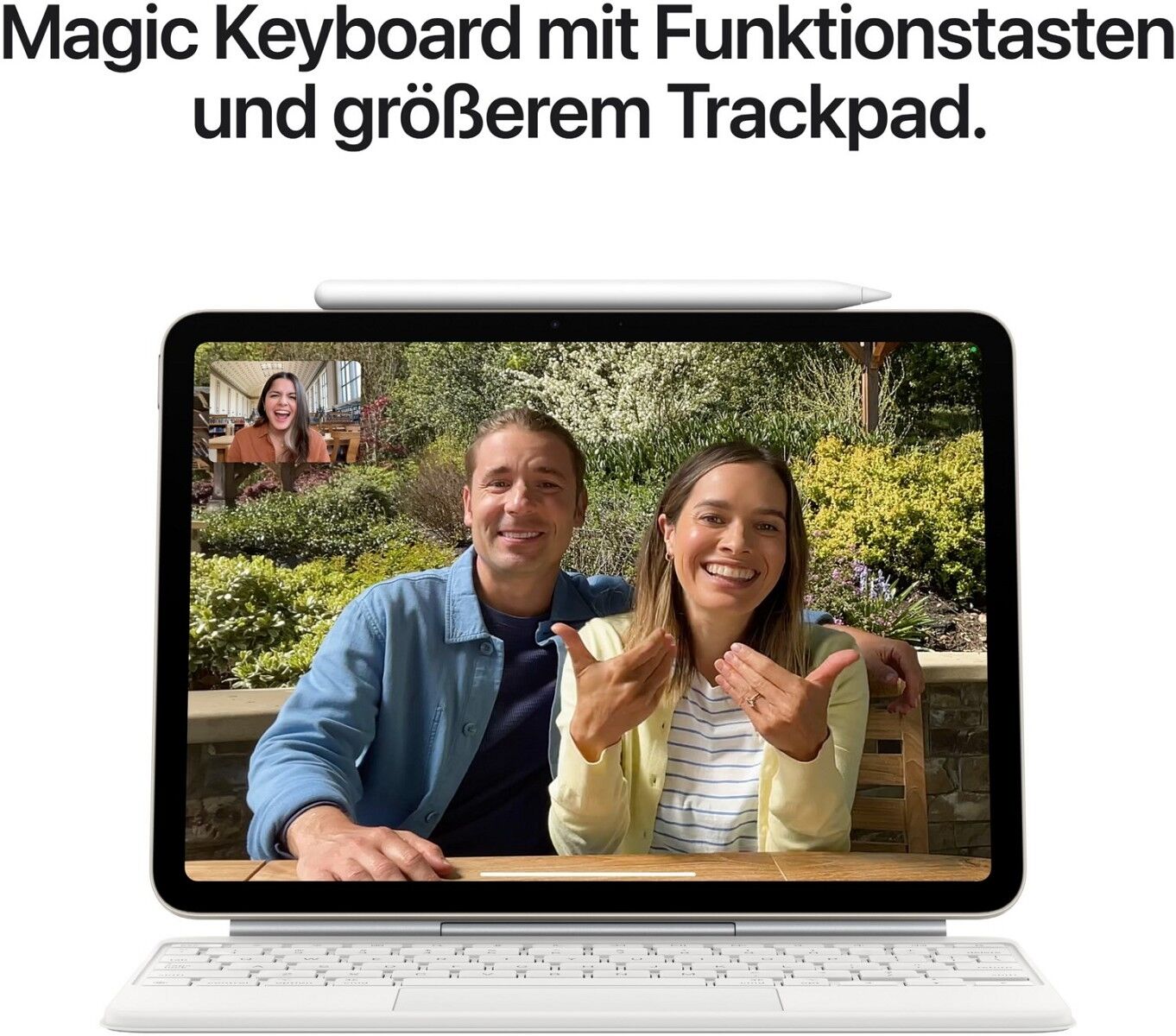 Für FaceTime Anrufe müssen Anrufende und Angerufene ein FaceTime fähiges Gerät und eine WLAN Verbindung nutzen. Die Verfügbarkeit über ein Mobilfunknetz ist abhängig von den Bedingungen des Anbieters. Es können Datengebühren anfallen.