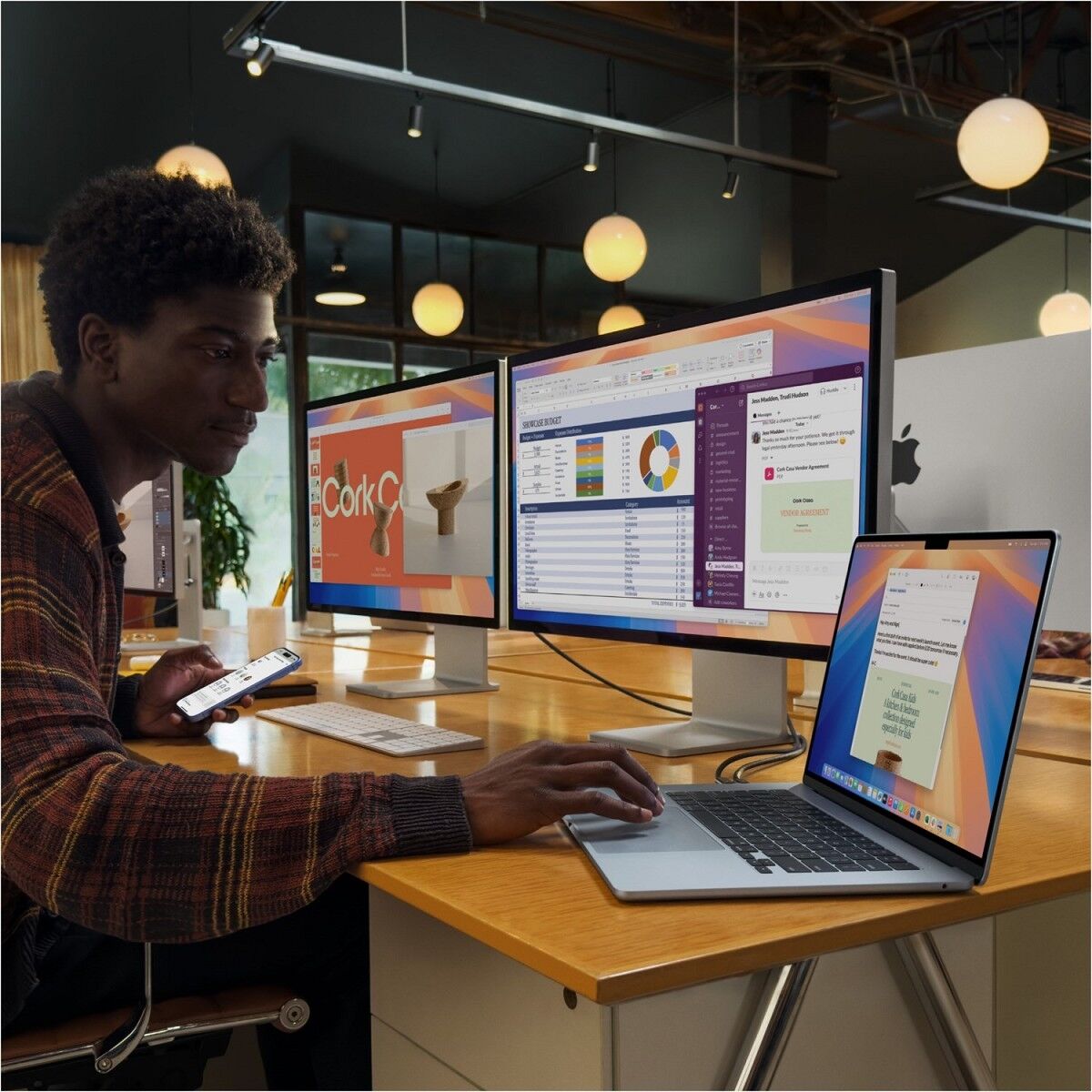 Das 15" MacBook Air mit dem M4 Chip macht Arbeit und Gaming superschnell. Mit Apple Intelligence,¹ einem großen Liquid Retina Display, bis zu 18 Stunden Batterielaufzeit² und einem unglaublich dünnen und leichten Design ist es so robust, dass du es überallhin mitnehmen kannst - um dann so ziemlich alles damit zu machen.