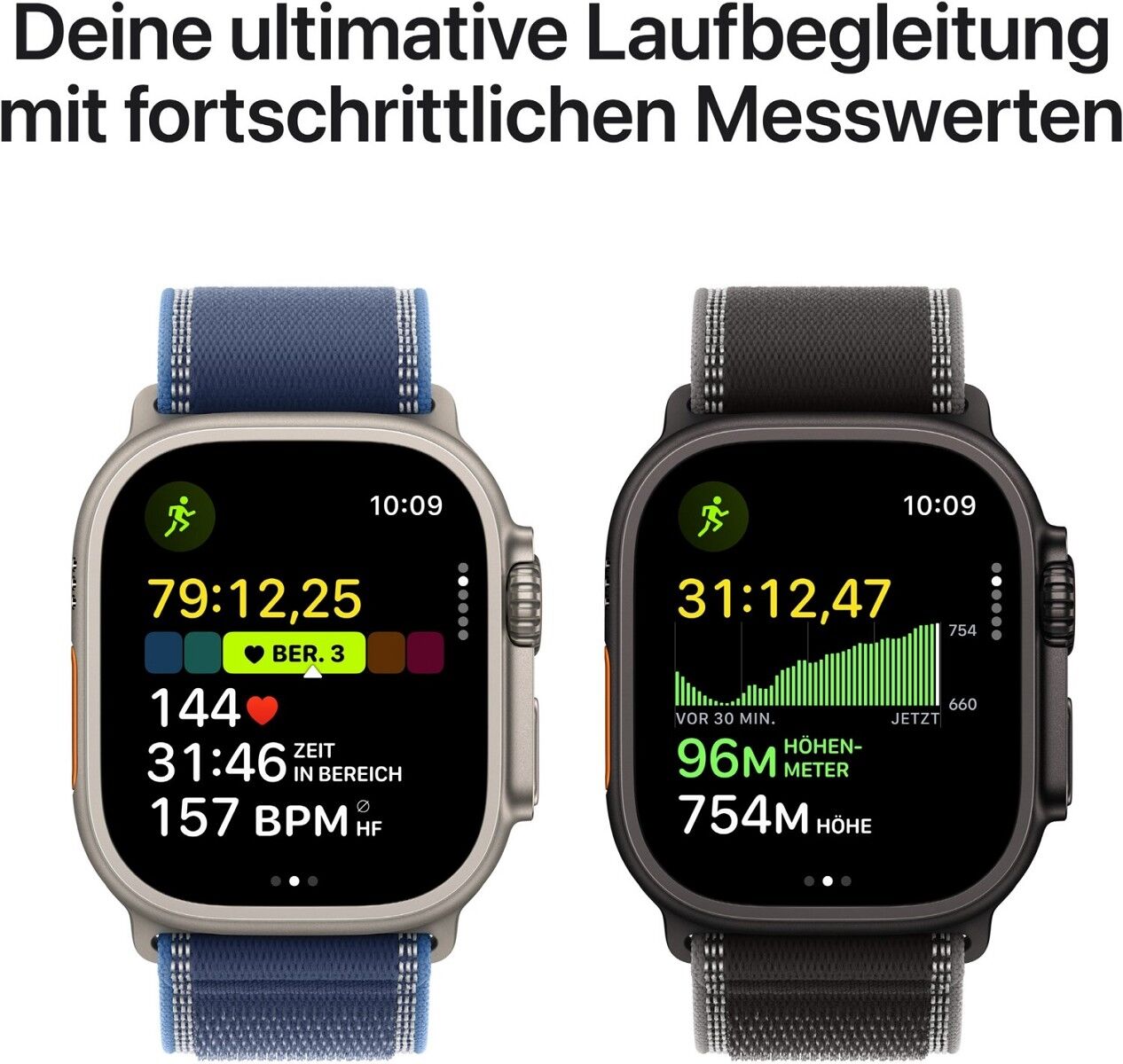 ³ Wenn das Display vom Sichtfeld weggeneigt ist, verglichen mit der Apple Watch Ultra oder Apple Watch Ultra 2.