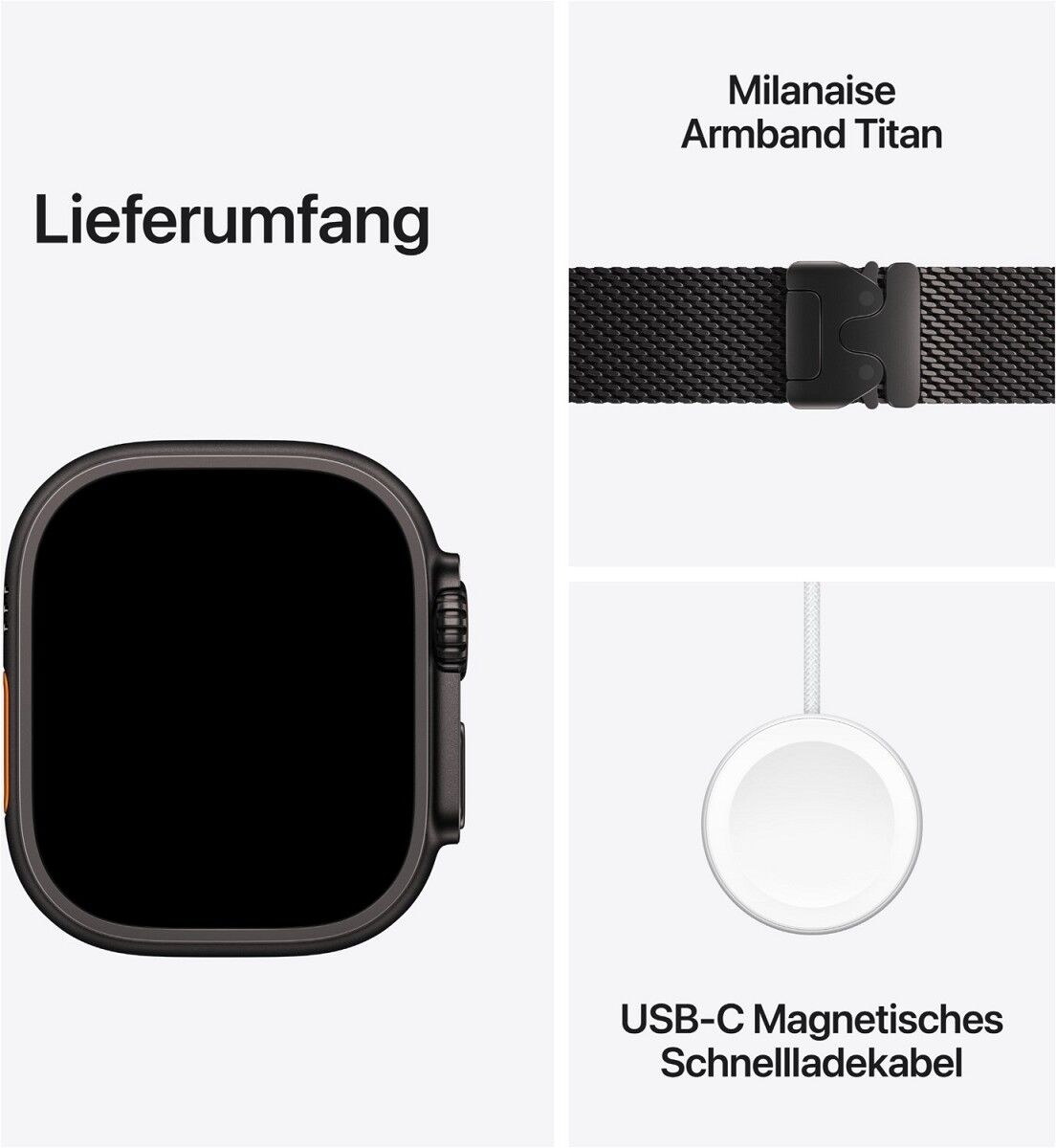 ¹ Notruf SOS und „Wo ist?“ via Satellit sind nach der Aktivierung einer Apple Watch Ultra 3 für zwei Jahre kostenlos. Die Verbindung und die Reaktionszeiten können je nach Standort, Umgebungsbedingungen und anderen Faktoren variieren. „Wo ist?“ via Satellit erfordert einen Mobilfunktarif. Die Satellitenverbindung wird durch Globalstar und seine verbundenen Unternehmen bereitgestellt. Weitere Infos unter support.apple.com/de-de/123924.