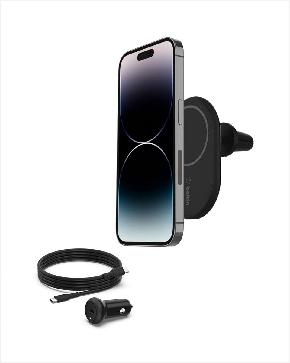 Dieses drahtlose Kfz-Ladegerät ist auf die Nutzung der MagSafe-Technologie der Geräte der iPhone 13-Serie ausgelegt. Sie können Ihr iPhone 13 schnell mit 10 W Leistung im Auto aufladen und kommen nie mit einem leeren Akku an Ihrem Ziel an. Mithilfe des Magneten können Sie Ihr Gerät immer wieder in der perfekten Ausrichtung anbringen – mühelos mit einer Hand. Sie können Ihren Bildschirm ins Hoch- bzw. Querformat drehen, je nachdem, ob Sie gerade Ihre Playlist einstellen oder die Navigationsfunktion nutzen möchten. Der Ladevorgang wird dabei nicht unterbrochen.