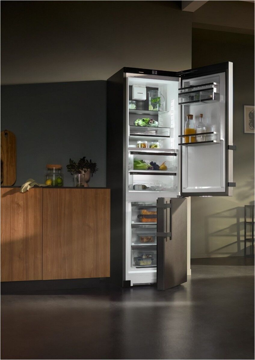 Die LIEBHERR CBNbsa 10 575i-1-23 Kühl-/Gefrierkombination in edlem BlackSteel vereint elegantes Design mit innovativer Frischetechnologie – perfekt für alle, die in ihrer Küche Wert auf Ästhetik, Funktionalität und Nachhaltigkeit legen. Mit einem großzügigen Nutzinhalt und durchdachter Innenaufteilung bietet dieses Modell sowohl im Kühl- als auch im Gefrierbereich ausreichend Platz für Lebensmittel aller Art – vom knackigen Gemüse bis hin zu tiefgekühlten Vorräten.