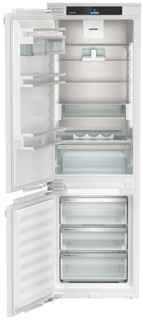 Der LIEBHERR SICNdi 5153-22 ist die perfekte Symbiose aus modernster Technologie, innovativen Funktionen und hochwertigem Design – und sorgt dafür, dass Ihre Lebensmittel immer optimal gelagert werden. Jeder Aspekt dieses Kühlschranks wurde mit dem Ziel entwickelt, Ihre Küche nicht nur funktionaler, sondern auch smarter und effizienter zu machen. Mit der EasyFresh-Technologie bleiben Ihre Lebensmittel besonders lange frisch und genießen ideale Lagerbedingungen. Die konstante Temperatur und Luftfeuchtigkeit sorgen dafür, dass Obst und Gemüse länger ihre Vitamine und Nährstoffe bewahren, damit Sie immer von der besten Frische profitieren. Die DuoCooling-Technologie sorgt für eine unabhängige Kühlung von Kühl- und Gefrierbereich. So können Sie den Kühlschrank und das Gefrierfach jeweils individuell einstellen – ohne dass sich Feuchtigkeit oder Gerüche zwischen den Bereichen vermischen. Diese innovative Funktion garantiert die perfekte Lagerung für jedes Lebensmittel. Mit der SmartDeviceBox können Sie den LIEBHERR SICNdi 5153-22 bequem über Ihr Smartphone steuern. Temperatur anpassen, Benachrichtigungen erhalten oder den Gerätezustand prüfen – alles ist nur einen Fingertipp entfernt. Diese smarte Steuerung sorgt für maximale Flexibilität und Komfort. Die LightTower-Beleuchtung sorgt für eine gleichmäßige und brillante Ausleuchtung des gesamten Innenraums. Alle Lebensmittel sind gut sichtbar und schnell erreichbar – kein Suchen mehr in dunklen Ecken. Diese innovative Beleuchtung bringt Klarheit und Übersicht in den Kühlschrank. Das Touch & Swipe-Display ermöglicht eine benutzerfreundliche und intuitive Steuerung. Mit einem Wischen oder Tippen können Sie alle Einstellungen ganz einfach anpassen – sei es die Temperatur oder spezielle Funktionen wie SuperCool. Die Bedienung könnte nicht einfacher und komfortabler sein. Das SoftSystem sorgt dafür, dass sich die Türen sanft und leise schließen. Diese Funktion schont nicht nur das Gerät, sondern garantiert auch eine besonders angenehme und ruhige Nutzung. Der VarioSpace bietet Ihnen die Flexibilität, den Innenraum des Kühlschranks ganz nach Ihren Bedürfnissen zu gestalten. Dank herausnehmbarer Regale und Fächer können Sie den Stauraum individuell anpassen – für besonders hohe oder sperrige Lebensmittel. Die SuperFrost-Funktion sorgt dafür, dass Lebensmittel schnell und effizient eingefroren werden, um ihre Vitamine und Nährstoffe zu bewahren. Diese Funktion ist besonders praktisch, wenn Sie frische Lebensmittel langfristig aufbewahren möchten. Mit SuperCool können Sie frische Lebensmittel schnell auf ideale Kühlschranktemperaturen bringen, ohne dass die anderen Lebensmittel im Kühlschrank beeinträchtigt werden. So bleiben alle Ihre Vorräte optimal gekühlt.