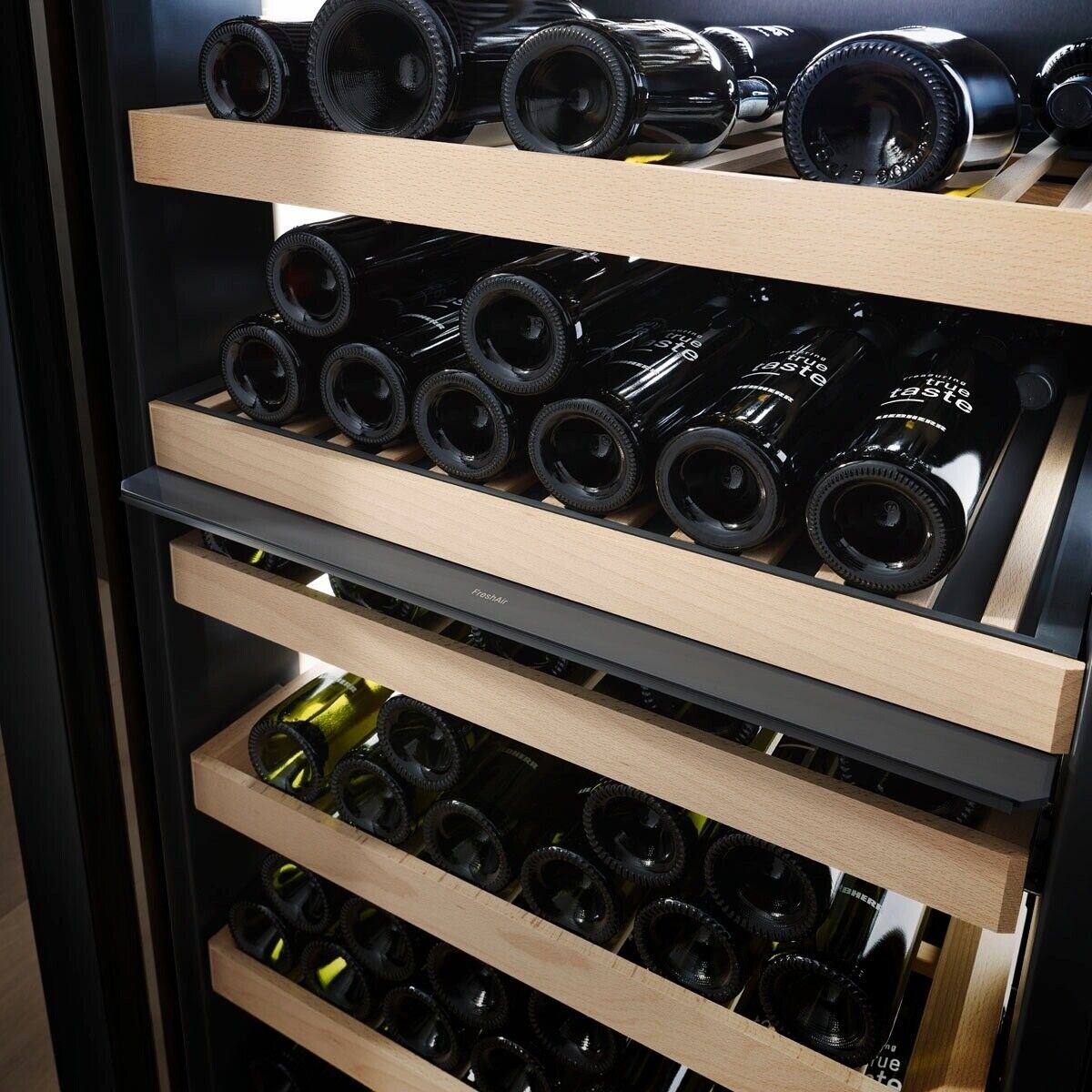 Der Liebherr WPgbi 7472-20 Weintemperierschrank ist der ideale Ort für die Aufbewahrung und Reifung Ihrer wertvollen Weine. Mit innovativen Funktionen und einer eleganten, modernen Optik bietet dieser Schrank alles, was Sie für die perfekte Weinlagerung benötigen. Durch die Kombination aus fortschrittlicher Technologie und hochwertigem Design schafft der WPgbi 7472-20 optimale Bedingungen, um Ihre Weine in einem idealen Umfeld reifen zu lassen. Die digitale Temperaturanzeige ermöglicht eine präzise Überwachung und Steuerung der beiden Temperaturzonen. Mit dieser Funktion können Sie sicherstellen, dass Ihre Weine stets unter den optimalen Bedingungen lagern – für perfekte Reifung, ob für Rot-, Weiß- oder Schaumweine. Sie haben stets die volle Kontrolle über die Temperatur in beiden Zonen, um die Weine nach Ihren Vorlieben zu lagern. Das LED-Lichtpanel des Liebherr WPgbi 7472-20 ist nicht nur funktional, sondern verleiht Ihrem Weinschrank auch eine elegante Note. Das Panel ist beidseitig dauerhaft zuschaltbar und dimmbar, sodass Sie die Beleuchtung individuell anpassen können, um Ihre Weine in bestem Licht zu präsentieren. So wird jede Flasche zu einem Kunstwerk, das Sie gerne bewundern. Mit der VibrateSafe-Technologie bleibt Ihre Weinsammlung in Ruhe, ohne von störenden Vibrationen beeinflusst zu werden. Vibrationen können die Reifung und den Geschmack Ihrer Weine beeinträchtigen, doch dieser Schrank sorgt für eine vibrationsarme Lagerung, die den Reifungsprozess optimal unterstützt. Die EasyFill Beladungshilfe macht das Befüllen des Schranks besonders einfach. Diese Funktion ermöglicht es, Ihre Weine schnell und ohne Aufwand zu verstauen, sodass Sie mehr Zeit für den Genuss und die Pflege Ihrer Sammlung haben. Mit der vibrationsarmen Lagerung sorgt der Liebherr WPgbi 7472-20 dafür, dass Ihre Weine in einem stabilen Umfeld reifen können. Die vibrationsfreie Lagerung ist ein wichtiger Faktor, um den natürlichen Reifungsprozess nicht zu stören und die Aromen Ihrer Weine zu bewahren. Die ideale Luftfeuchtigkeit ist für die Lagerung von Wein unerlässlich. Sie verhindert das Austrocknen der Korken und sorgt dafür, dass Ihre Weine ihre Frische und Aromen über die Jahre hinweg bewahren. Der Liebherr WPgbi 7472-20 sorgt dafür, dass die Luftfeuchtigkeit konstant bleibt und Ihre Weine unter den besten Bedingungen reifen. Das edle GlassBlack-Design des Weintemperierschranks verleiht Ihrem Raum eine luxuriöse Atmosphäre. Die Isolierglastür in Kombination mit dem schwarzen Glasrahmen ist nicht nur optisch ein Highlight, sondern auch besonders funktional, da sie die Weine vor schädlichem UV-Licht schützt und gleichzeitig eine klare Sicht auf Ihre Sammlung ermöglicht. Dank der Super Silent-Technologie arbeitet der Liebherr WPgbi 7472-20 besonders leise, sodass Sie ihn in jedem Raum aufstellen können, ohne dass störende Geräusche den Genuss beeinträchtigen. Ihre Weine können in einer absolut ruhigen Umgebung reifen, was für eine optimale Entwicklung ihrer Aromen sorgt. Mit der Temp Protect Plus-Funktion bleibt die Temperatur im Liebherr WPgbi 7472-20 konstant und zuverlässig. So sind Ihre Weine vor plötzlichen Temperaturschwankungen geschützt und können unter stabilen Bedingungen reifen. Diese Technologie sorgt dafür, dass Ihre Weine jederzeit die besten Voraussetzungen für ihre Entwicklung haben.
