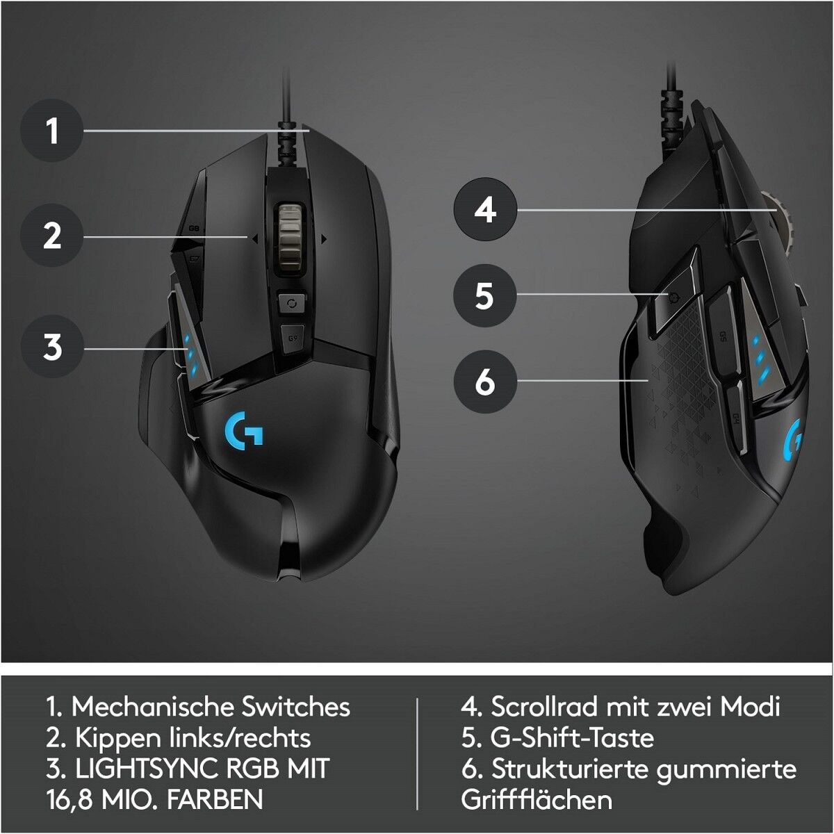 Deine bevorzugte High Performance Gaming-Maus bietet jetzt noch mehr leistungsstarke Funktionen. Du kannst die RGB-Beleuchtung an deinen Stil und deine Umgebung anpassen oder sie mit anderen Logitech G Produkten synchronisieren. Die G502 High Performance Gaming-Maus ist ausgestattet mit unserem optischen HERO Sensor für hohe Abtastpräzision und Genauigkeit. Egal, was dein Gaming-Stil ist: Die G502 HERO passt sich genau an deine Anforderungen an, mit benutzerdefinierten Profilen für deine Spiele, einstellbarer Empfindlichkeit von bis 25.600 dpi (Software Update erforderlich) sowie einem Tuning-fähigen Gewichtssystem mit bis zu fünf 3,6-g-Tuning-Gewichten für den idealen Schwerpunkt und das optimale Bediengefühl.