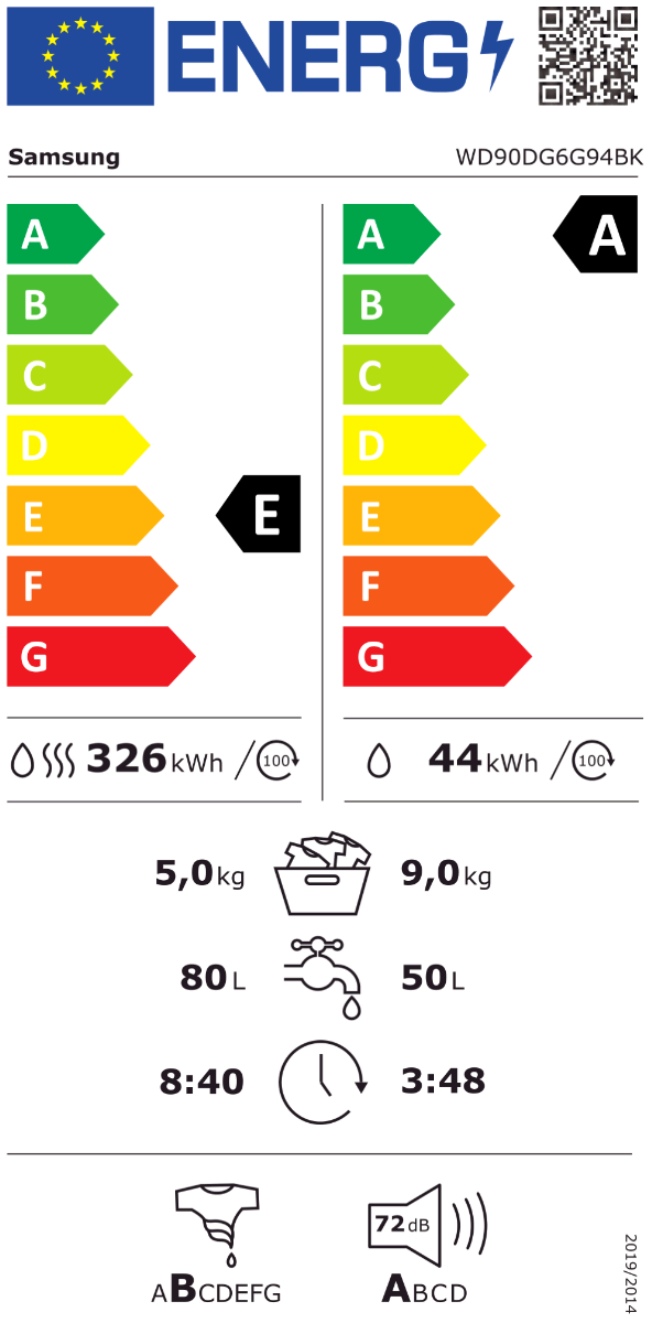 Samsung WD90DG6G94BKU2 Slim Stand-Waschtrockner
